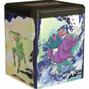 Een Stacking Tin van Pokémon uit 2025 met diverse Paradox Pokémon.